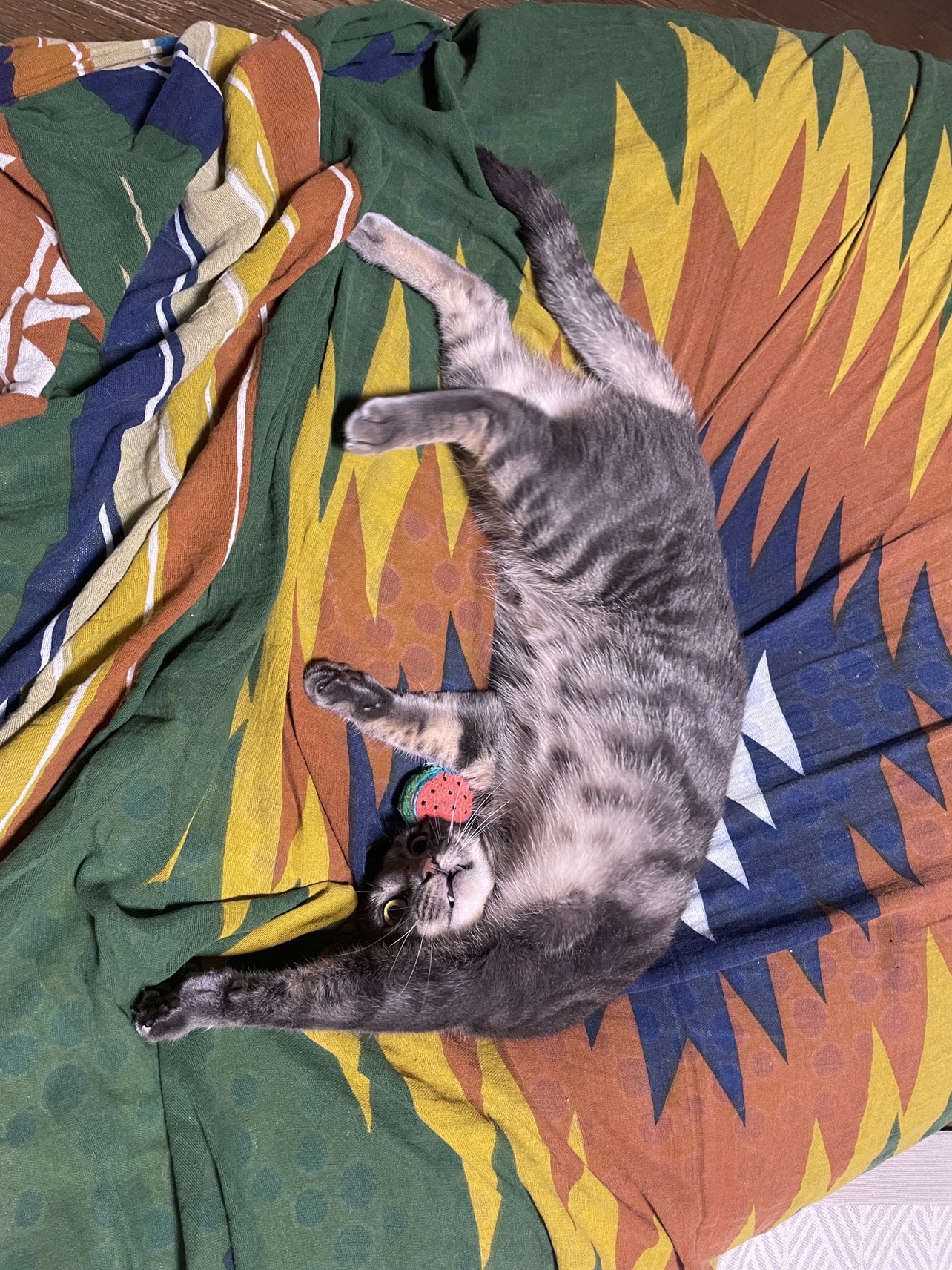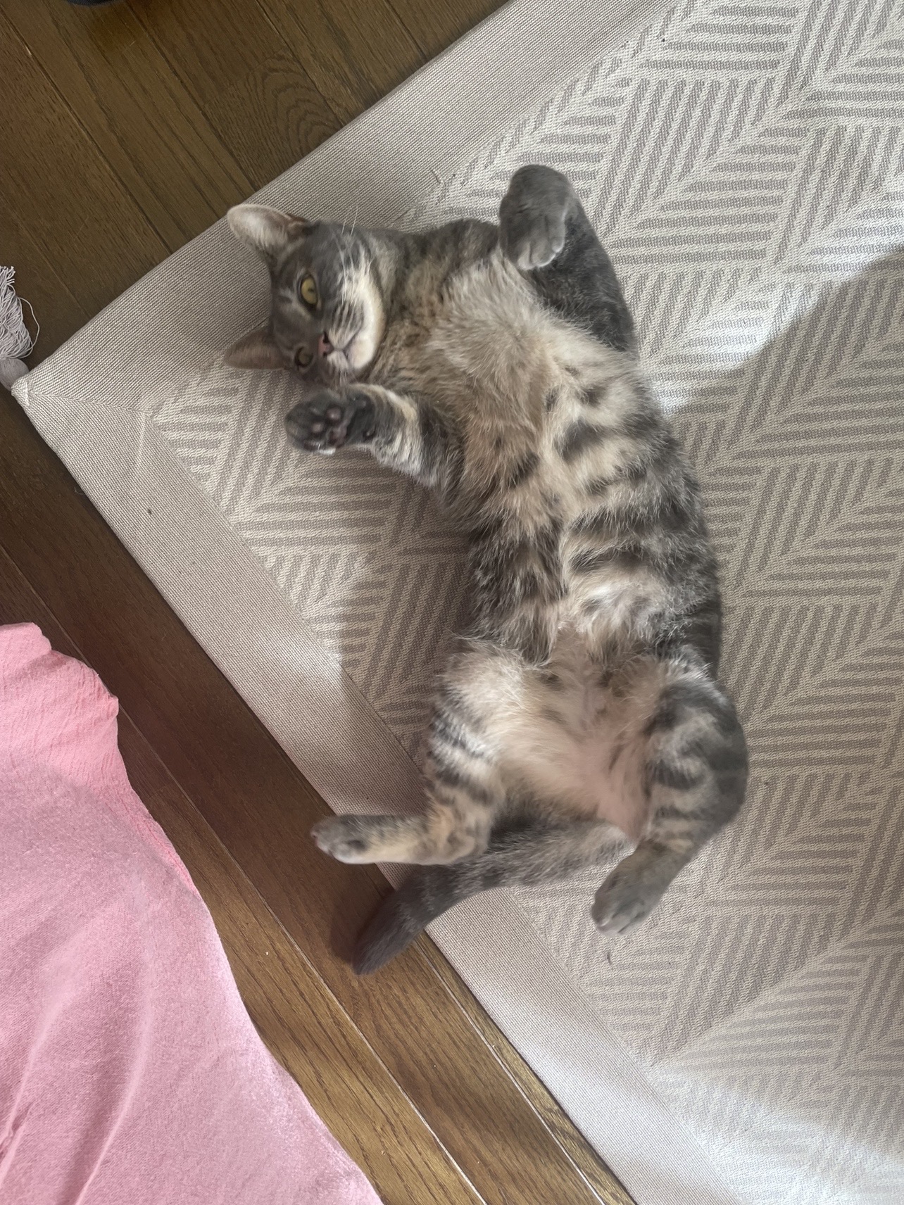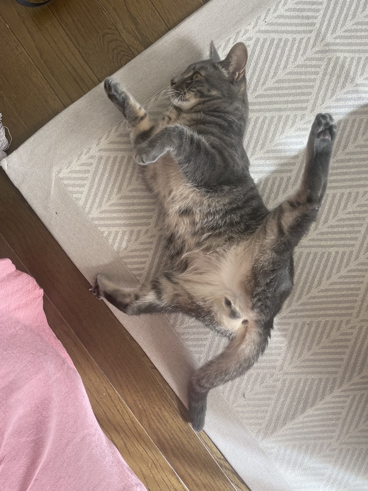 警戒心なしの股割リラックスポーズです。股関節柔らか〜!
