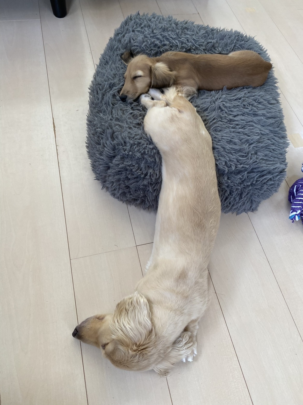 ・のんちゃんのベッドをあるちゃんに占領された結果です 笑笑笑