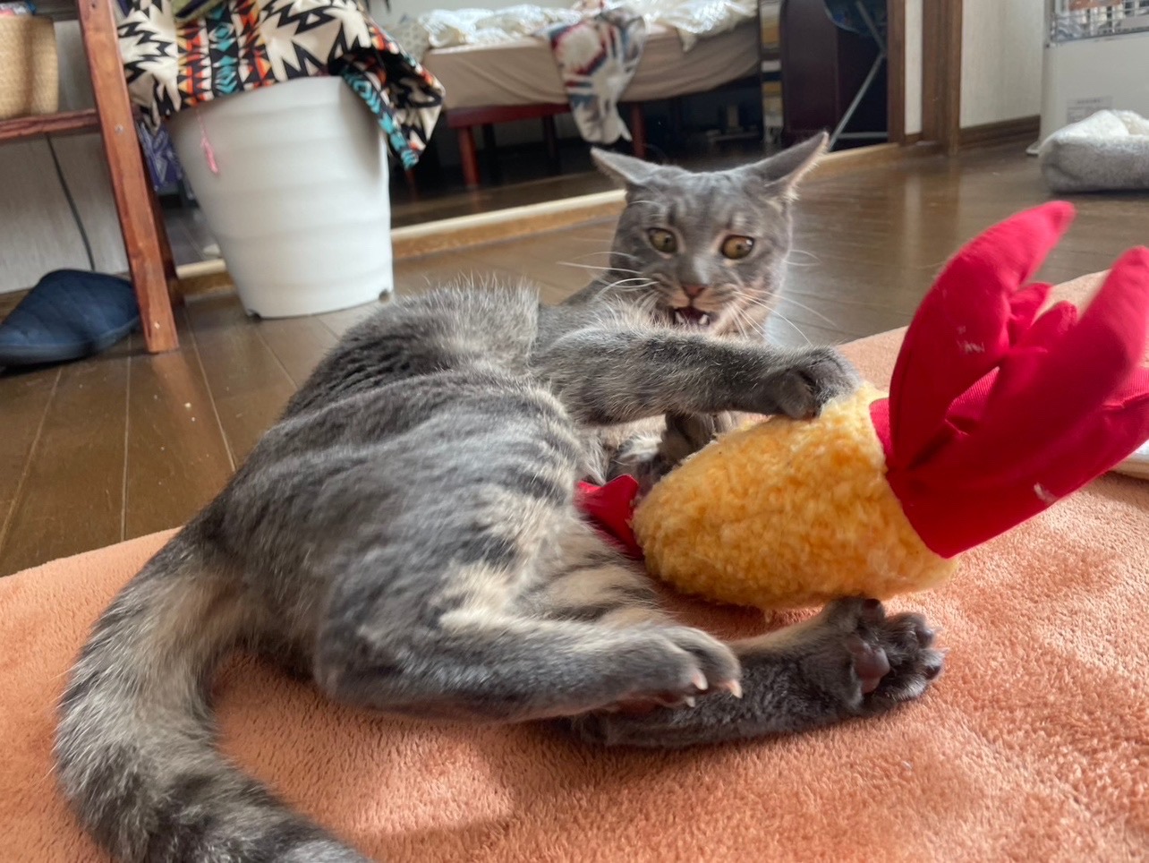 ・大好きなケリぐるみというぬいぐるみのおもちゃで大興奮!