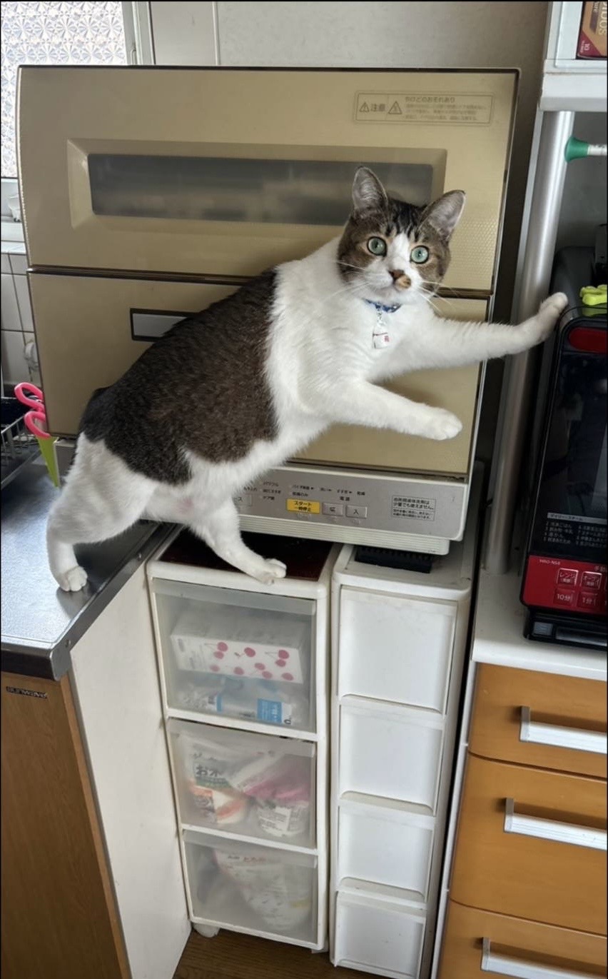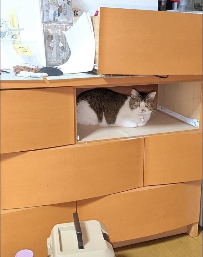 ・ママのお片付け中の引き出し抜いた場所はホント居心地良いニャー❣️