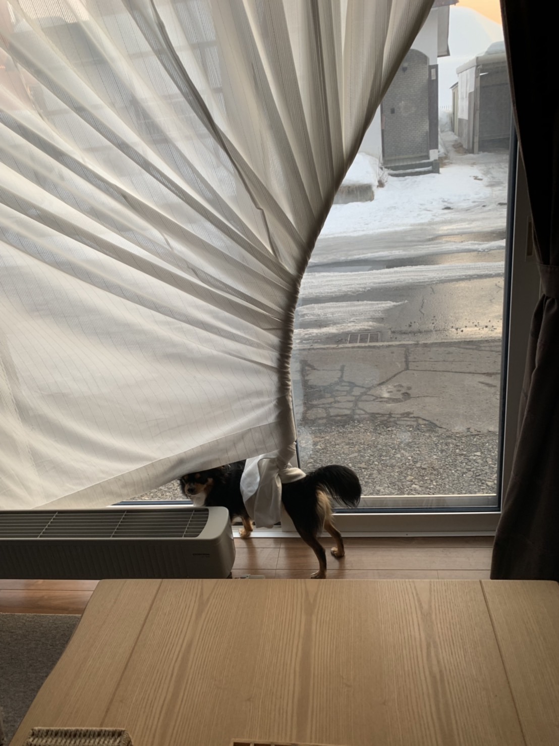 隠れて驚かそうとしているところです。頭隠して足隠さず…バレバレー(笑)