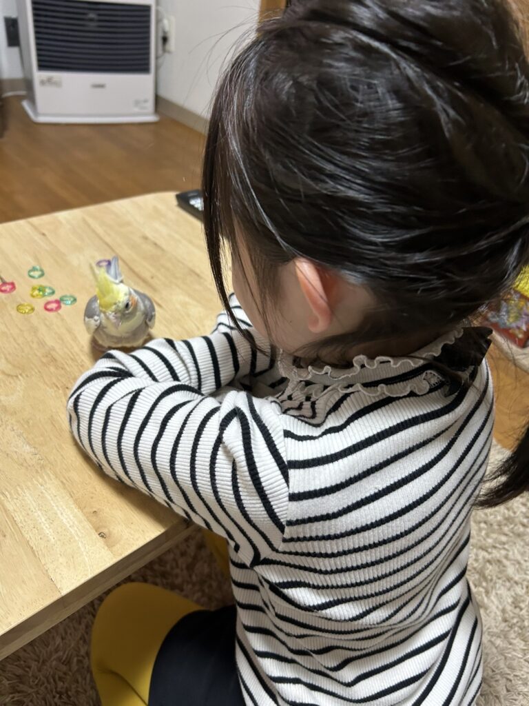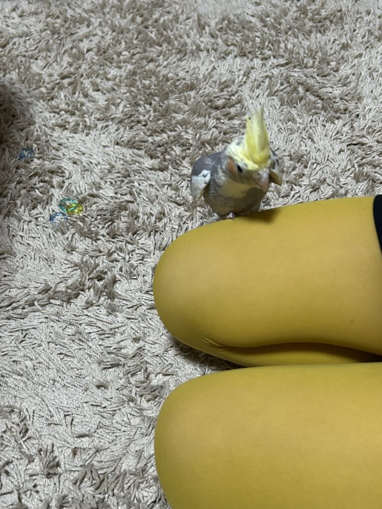オカメインコは臆病で繊細な性格だそうで、最初は隅っこで静かに「じーーっ」としてましたが、少しづつ、少しづつ徐々に慣れてきて、今では手に乗ったり、オモチャで遊んだり、床をお散歩したり。🎵