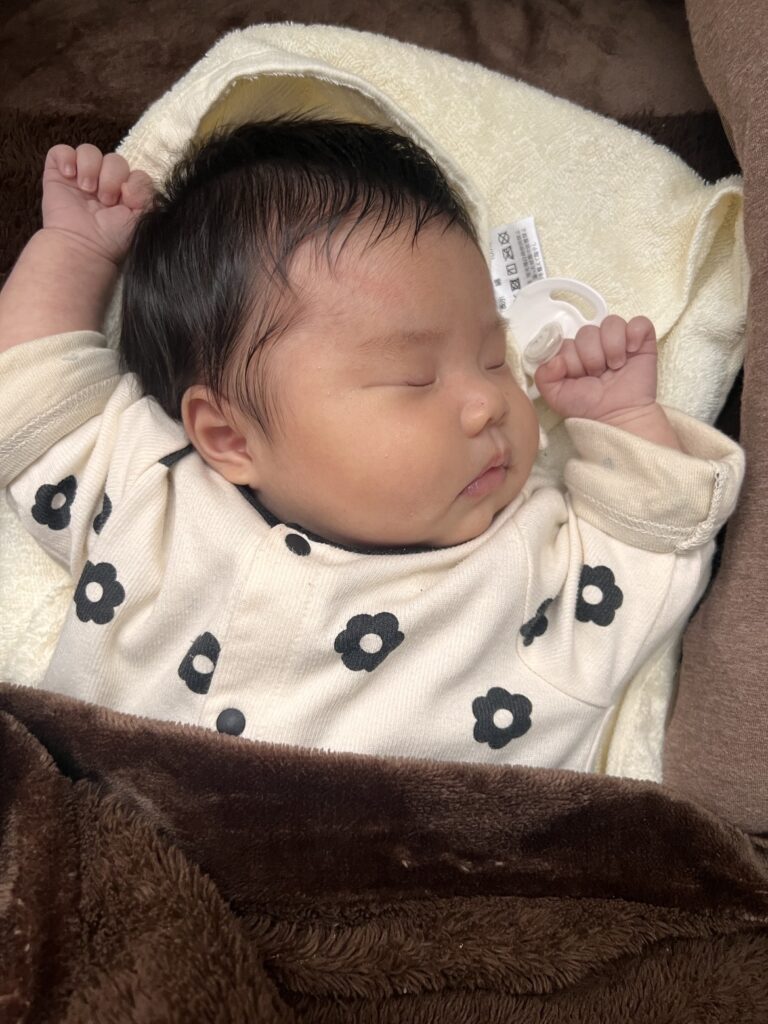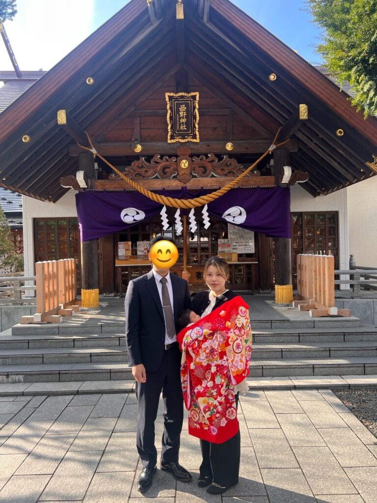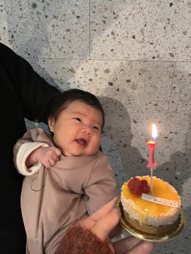 1ヶ月記念日にはケーキでお祝いし、お宮参りにも行きました!