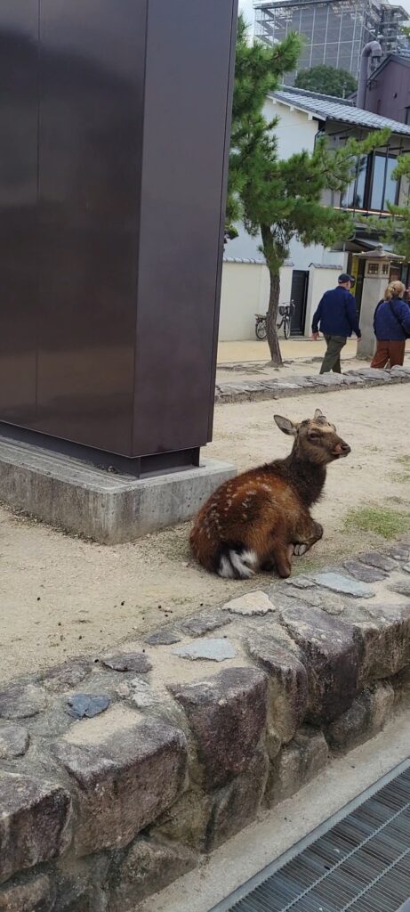 奈良の鹿や春日大社のような神鹿伝説は厳島には存在しないそうですが、至るところにたくさんの鹿がいて、人口1700人の所に100頭くらいいると聞きました。